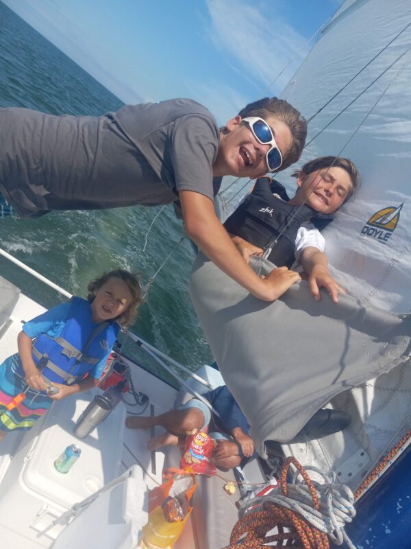 Children are very welcome aboard, but per the coast guard children under 12 must be in a life jacket while on board the sailboat. You must bring an appropriately sized life jacket for each child. We do not have the boat equipped with child sized life jackets.